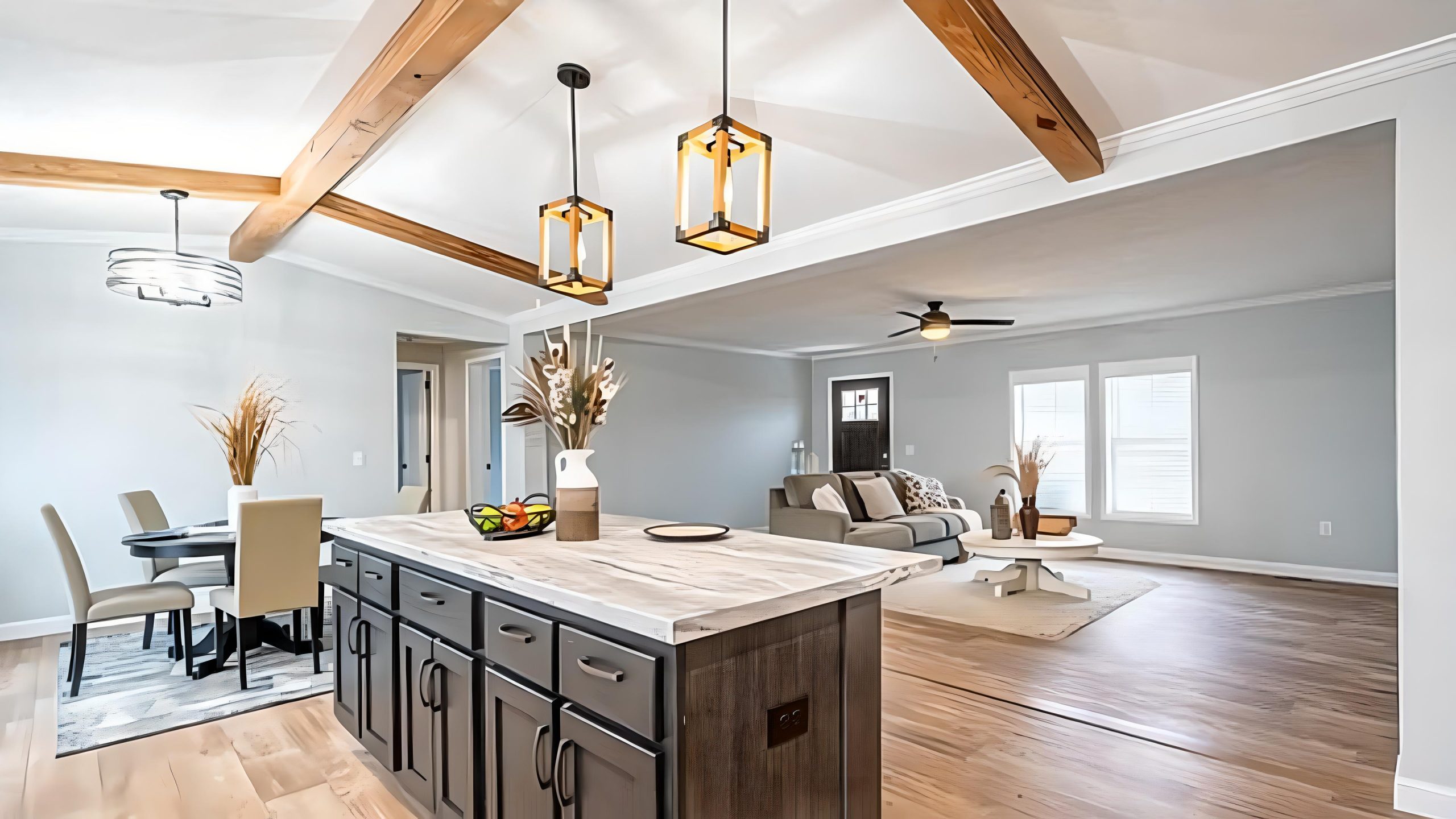 Внутри — логичное, светлое пространство. Ничего лишнего: кухня с островом, где удобно есть, готовить, болтать. Современные материалы, приятные текстуры, тишина — даже если за стеной идёт дождь. Просторная душевая с деревом на стенах — будто маленький спа. А спальня даёт то, за что мы любим дома — возможность закрыть дверь и остаться в тишине.